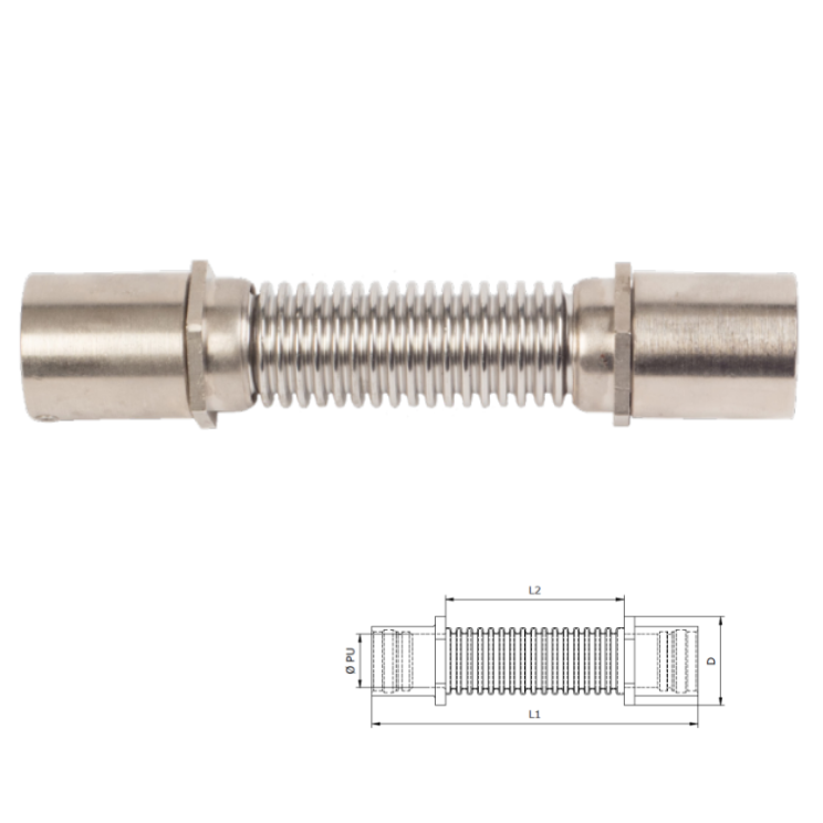 Utilitaire: Les manchons compensateurs de dilatation permettent d'absorber d'éventuels mouvements axiaux imprévus le long de l'axe générateur du tube, ainsi que des dilatations ou des vibrations. Son utilisation est donc particulièrement indiquée dans les zones où la canalisation traverse des zones comportant des joints, comme décrit dans la section 2.2 du guide.