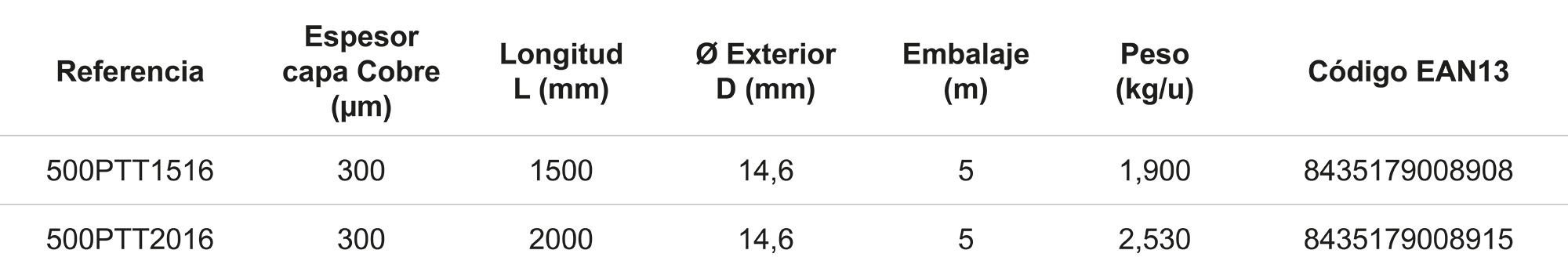 Tipo de Recubrimiento: Cobre electrolítico con pureza mínima del 99,9% según norma UNE 20003.